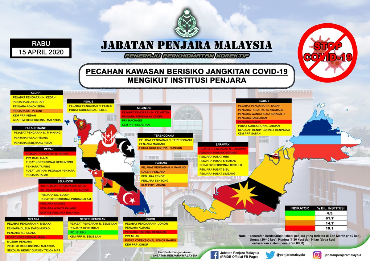 Penjara Malaysia On Twitter Pecahan Kawasan Berisiko Jangkitan Covid 19 Mengikut Institusi Penjara Followtherules Janganputusasamalaysiakujanganputusasapenjaraku Stopcovid19 Kdnputrajaya Kkmputrajaya Dhzhamzah Dghisham Alnassif