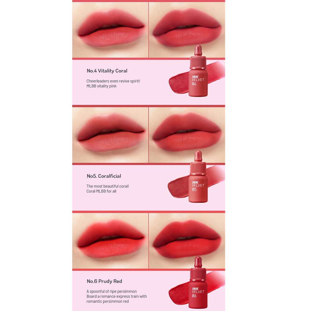 Peripera Ink Cloud Velvet 02 Heart Red Orange 03 Pure Apricot Coral