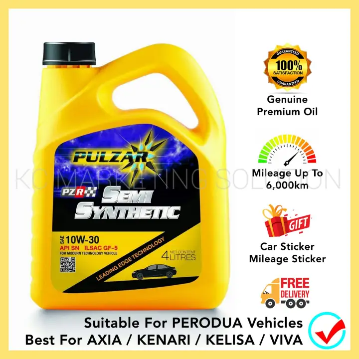 For Perodua Pulzar Semi Synthetic Engine Oil Sae 10w30 Api Sn Ilsac Gf 5 4l Minyak Hitam Untuk Axia Kenari Viva Lazada