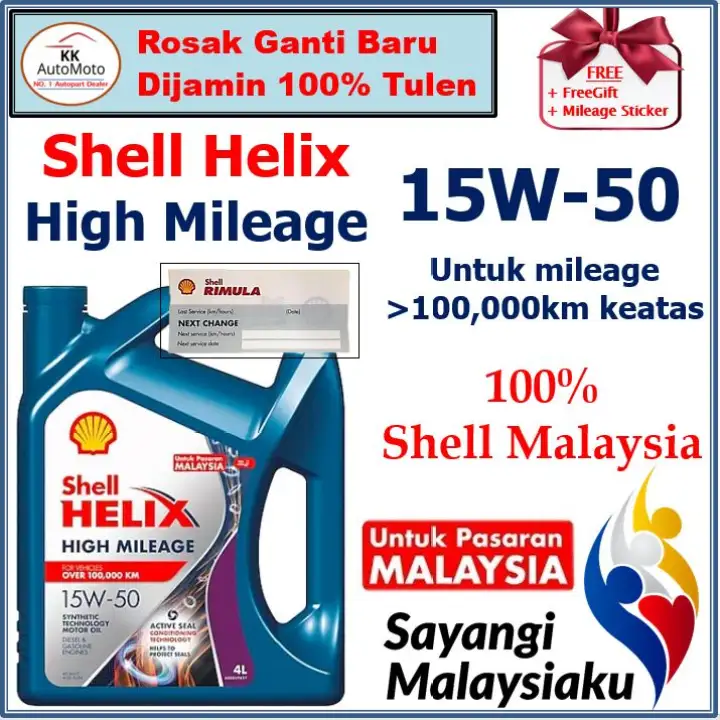 Original Shell 15w 50 15w50 15w 50 Helix High Mileage Semi Synthetic Minyak Hitam Engine Oil 4l Lazada