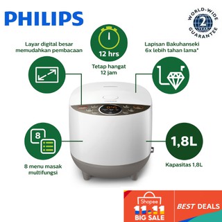 Philips Rice Cooker 1 8l 2 0mm 5 Layer Hd3038 Fuzzy Logic Shopee Malaysia