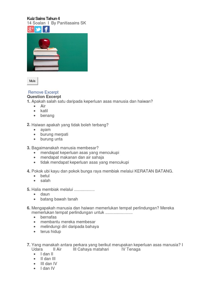 Kuiz Sains Tahun 4 Remove Excerpt