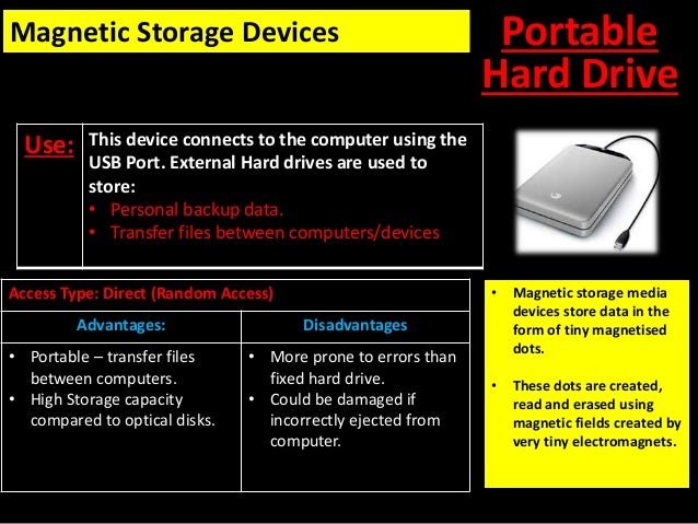 2 you can use an external hard as an emergency backup drive. An ssd with a storage capacity similar with an hdd can be twice as expensive. Advantages of a magnetic disk. We can use it as a storage device for any computer with a usb or firewire capability.