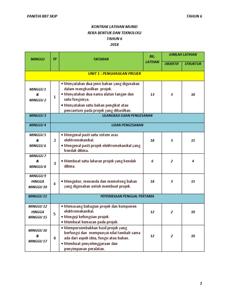 Rpt Kssr Tahun 6 Reka Bentuk Dan Teknologi Rbt Docx