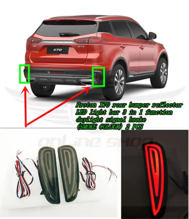 Proton X70 Rear Bumper Reflector Led Light Bar 3 In 1 Function Daylight Signal Brake Smoke Lens 2 Pcs Lazada