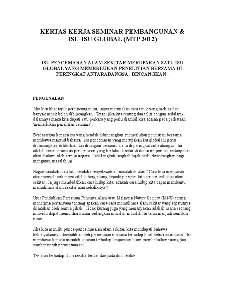 Kertas Kerja Seminar Pembangunan Isu Isu Global Mtp 3012