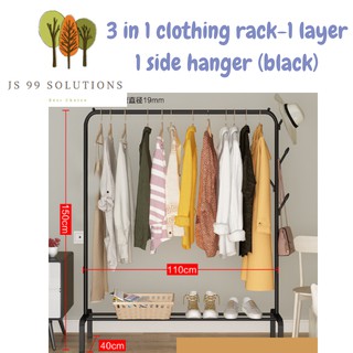 150cm Black Clothes Rack 3 Layer Stroage Hange Organizer Rack Pole Garment Cloth Rak Baju Pakaian Hanging Like Ikea Iag Shopee Malaysia